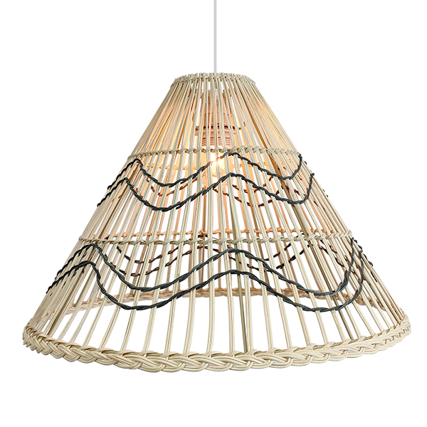 Tebigy rattan çyrasy elde ýasalan we tutawajy bilen potolokdan asylyp bilner. Bu rattan çyrasynyň çyrasy elde ýasalan, hersi özboluşly.Öýüňize ýyly we ýyly atmosfera getirip, ýumşak çyralary öçürýär.Otagy ýyly we amatly tarapda saklanyňyzda ýagtylygyň geçmegine ýol açýan görnüşde dokalan. Saýlaw görnüşi kiçijik potolok beýiklikleri üçin ajaýyp!Her otaga çeper / bogemiki gurşaw we ýylylyk getirýär.