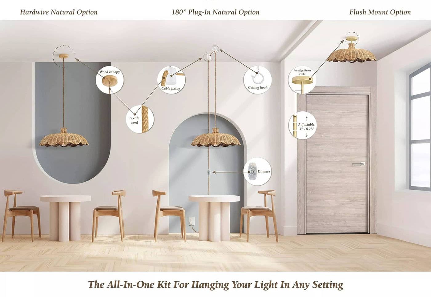 The size, color, accessories and packaging of Aurelia rattan pendant light can be customized according to your needs.