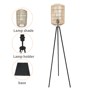 The Floor Lamp with Rattan Shade is made of woven rattan, wrapped around brass metal fixtures and a black tripod floor. This Floor Lamp with Rattan Shade is very simple in shape and elegant in design, providing lots of light in a smaller space; the natural rattan used has been carefully arranged to allow its natural style lighting to enhance your home decor. Looks great in our family room. Well-made and beautifully styled. Easy to assemble. Perfect for all kinds of interior corners, entrances, bedsides, etc. It can add a lot of personality to our space!