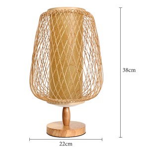 ʻO kēia kukui pākaukau ʻohe kū hoʻokahi, hoʻolālā maʻemaʻe a minimalist. Hana lima ʻia mai kahi kumu kukui papaʻaina i hui pū ʻia me ka malu ʻohe, nā mea i hoʻohana ʻia he lāʻau a me ka ʻohe i ulu ʻia ma ke ʻano, no laila e waiho i loko o kou home a lilo i hoʻokahi me ke ʻano.