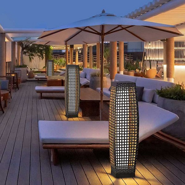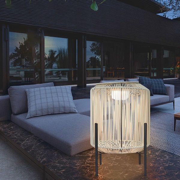 4.1. Match outdoor sofa and coffee table: Placing solar woven floor lamps next to outdoor sofas and coffee tables can add a cozy atmosphere to outdoor relaxation areas. It embellishes next to the sofa as a decoration and complements the outdoor plants; the soft light provides comfortable lighting, allowing your family and friends to enjoy a relaxing and enjoyable outdoor time.