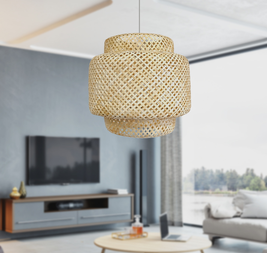 Chovala chowoneka bwino cha bamboo chokhala ndi mapangidwe olimba opangidwa ndi zinthu zofewa za nsungwi.Thependant kuwala kwa bamboondi cholimba ndipo angagwiritsidwe ntchito kwa nthawi yaitali.