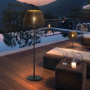 This is a PE rattan solar light used with outdoor furniture on an open-air platform. This light is originally designed by our designer.