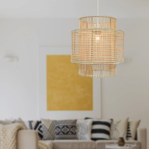 ਇਹ ਆਧੁਨਿਕ ਰਤਨ ਪੈਂਡੈਂਟ ਲਾਈਟ: ਲੈਂਪਸ਼ੇਡ ਹੱਥ ਨਾਲ ਬਣੇ ਕੁਦਰਤੀ ਲੱਕੜ ਦੇ ਰਤਨ ਤੋਂ ਬਣੀ ਹੈ। ਨਵੇਂ ਉਤਪਾਦ ਆਮ ਤੌਰ 'ਤੇ ਹਲਕੇ ਰੰਗ ਦੇ ਹੁੰਦੇ ਹਨ ਅਤੇ ਕੁਝ ਹਫ਼ਤਿਆਂ ਵਿੱਚ ਉਮਰ ਦੇ ਨਾਲ ਕੁਦਰਤੀ ਤੌਰ 'ਤੇ ਗੂੜ੍ਹੇ ਹੋ ਜਾਂਦੇ ਹਨ। ਤੇਜ਼ ਡਿਜ਼ਾਈਨ ਇਸ ਨੂੰ ਵਿਅਕਤੀਗਤ ਸਜਾਵਟ ਬਣਾਉਂਦਾ ਹੈ।
